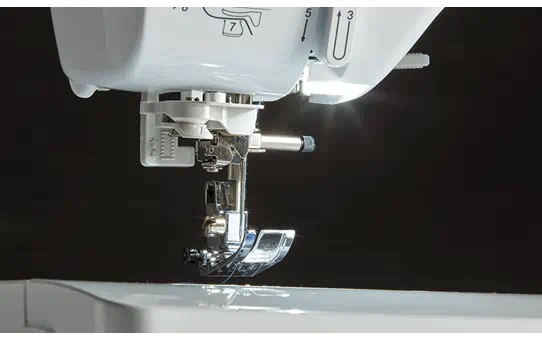 La manopola di selezione dei punti “jog dial” consente il controllo diretto delle funzioni dei punti, l’ampio display e le luci a LED facilitano il cucito sui tessuti scuri.