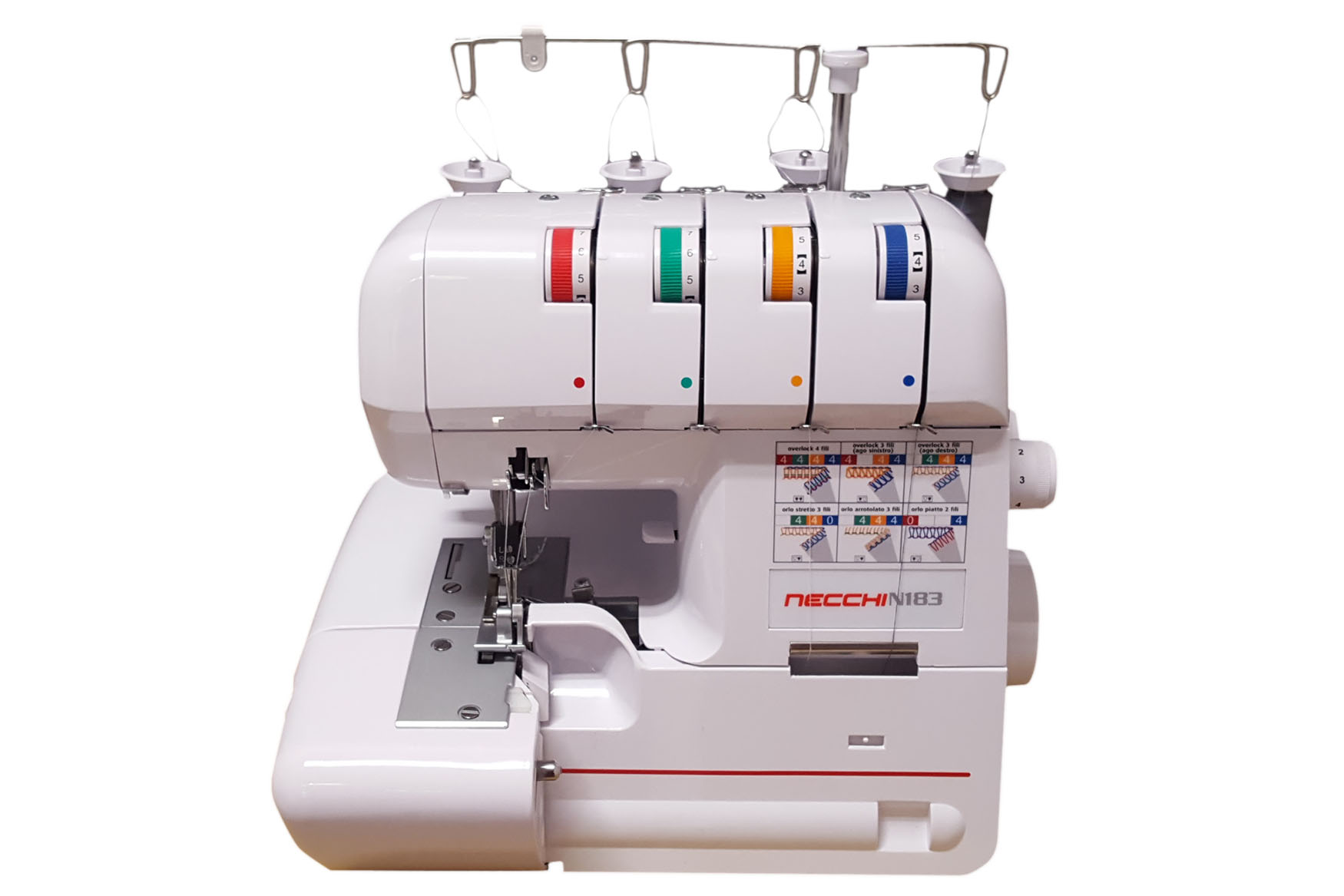 Necchi N183 è la collaboratrice più dinamica ed energica della vostra macchina per cucire: taglia, rifila, esegue orli arrotolati e rifiniture degne di un’abile professionista!